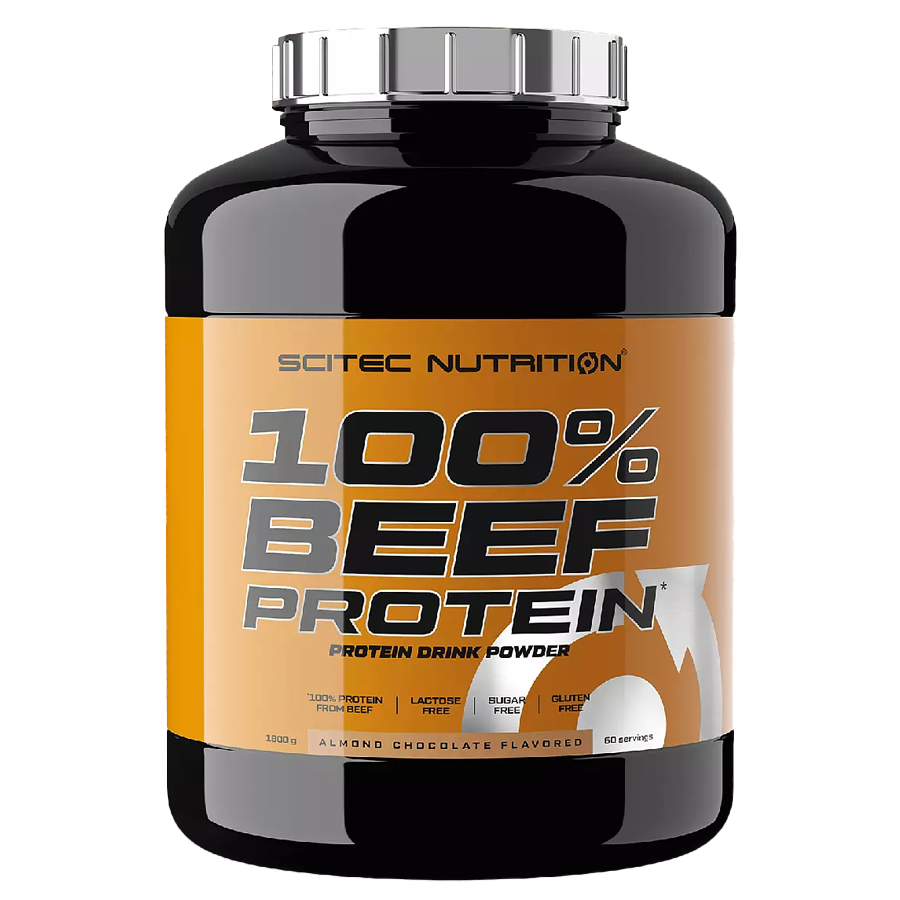 100% Beef Protein je receptúra na báze hovädzieho proteínu, ktorá má nízky obsah tukud, cukrub, laktózya a gluténuc. Jeho mandľová čokoládová príchuť vám spríjemní všedné dni a relax po tréningu. Produkt obsahuje hydrolyzovaný, alebo „predtrávený“, celý hovädzí proteín. Proteín prispieva k udržaniu a rastu svalovej hmoty a normálnej štruktúre kostí. Kompletné bielkoviny obsahujú všetky esenciálne aminokyseliny, ktoré si telo nevie syntetizovať a preto je potrebné ich dopĺňať potravou. V prvom rade, vyvážená a pestrá strava je najlepším spôsobom, ako doplniť bielkoviny, a náš produkt ich môže vhodne doplniť.