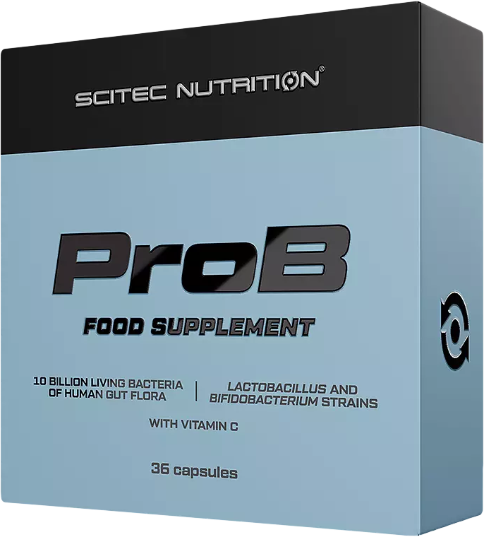 Produkt ProB spoločnosti Scitec Nutrition obsahuje štyri kmene živých baktérií nachádzajúcich sa v ľudskom gastrointestinálnom trakte, ako aj 40 mg vitamínu C.